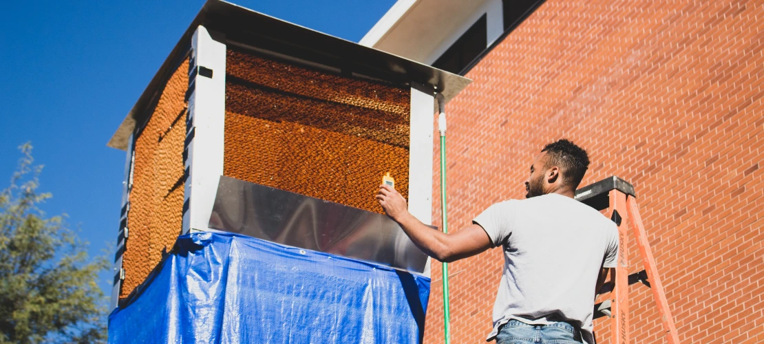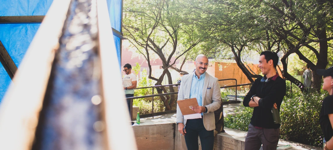 This fall, students of the ARC 461p and 561p, Environmental Science Laboratory, finished construction and testing of their innovative 'Cool Towers' or passive down-draft evaporative cooling systems. This energy-saving technology was initially developed here at the University of Arizona's Environmental Research laboratories and has been implemented into the curriculum by Dr. Nader Chalfoun. Professor Nader Chalfoun, Omar Youssef and GTA Rachelle Hornby coordinated this collaborative effort that allowed students to implement their theoretical learning outside the classroom into a real project.